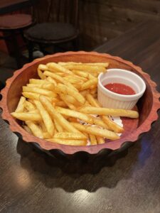 フライドポテトも胡椒のパンチが効いた味付けで、つまみとして相性抜群です。
